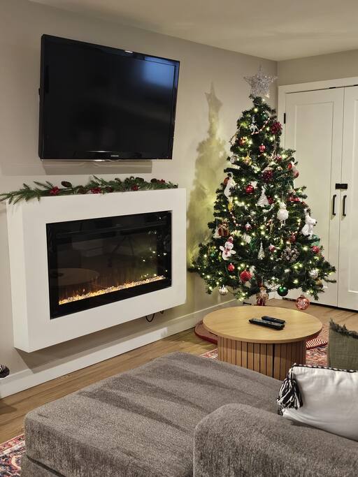 ✨ Key Features ☀ Sleeps 3 comfortably — 1 queen bed + foldaway cot + optional playpen ☀ Spa-inspired bathroom — deep soaker tub, rain shower, luxury eco-friendly bath products ☀ Fully equipped kitchen — dining for 4 + curated coffee bar with local roasts & loose-leaf teas ☀ Cozy living room — 56” ROKU TV, Bluetooth speaker, electric fireplace & board games ☀ Work-friendly — high-speed Wi-Fi & oversized desk for remote work ☀ Ample parking — private driveway for easy access ☀ Outdoor fire pit — perfect for starlit evenings & s’mores nights 🛏 Bedroom Unwind in a serene, stylish retreat with a queen-sized memory foam bed dressed in high-end linens. Bedside touch lamps with USB charging, ample closet space, luggage racks, and a laundry hamper ensure comfort for longer stays. Traveling with kids? A foldaway cot and playpen are ready when you need them. 🛁 Bathroom Indulge in a luxurious 4-piece bath featuring a rain shower, deep soaker tub, spacious vanity, and in-suite laundry. Plush towels, therapeutic bath soaks, and eco-conscious products from PG’s Homespun Refillery complete the spa-like experience. 🍽 Kitchen & Lounge Cook with ease in the fully stocked kitchen—complete with cookware, utensils, small appliances, and a dining table for 4. Start your day at the curated coffee bar with locally roasted coffee, loose-leaf teas, a Keurig, and a French Press. After a busy day, relax in the cozy living room with a 56” ROKU TV, electric fireplace, Bluetooth speaker, and a selection of classic board games. 🌲 Outdoor Space Step outside to your private driveway and fire pit area—ideal for stargazing, late-night conversations, or roasting marshmallows under the open sky. ★☆ Book Your Stay at Boho Bliss ☆★ Whether you’re in Prince George for a work assignment, a family visit, or a weekend escape, Boho Bliss offers the perfect balance of comfort, convenience, and curated design—just one block from UHNBC and minutes from downtown.